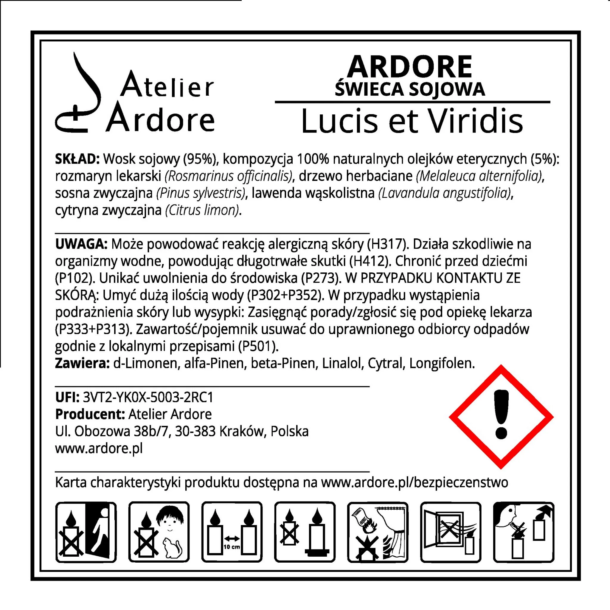 Karta charakterystyki REACH CLP Świeca sojowa ARDORE Lucis et Viridis