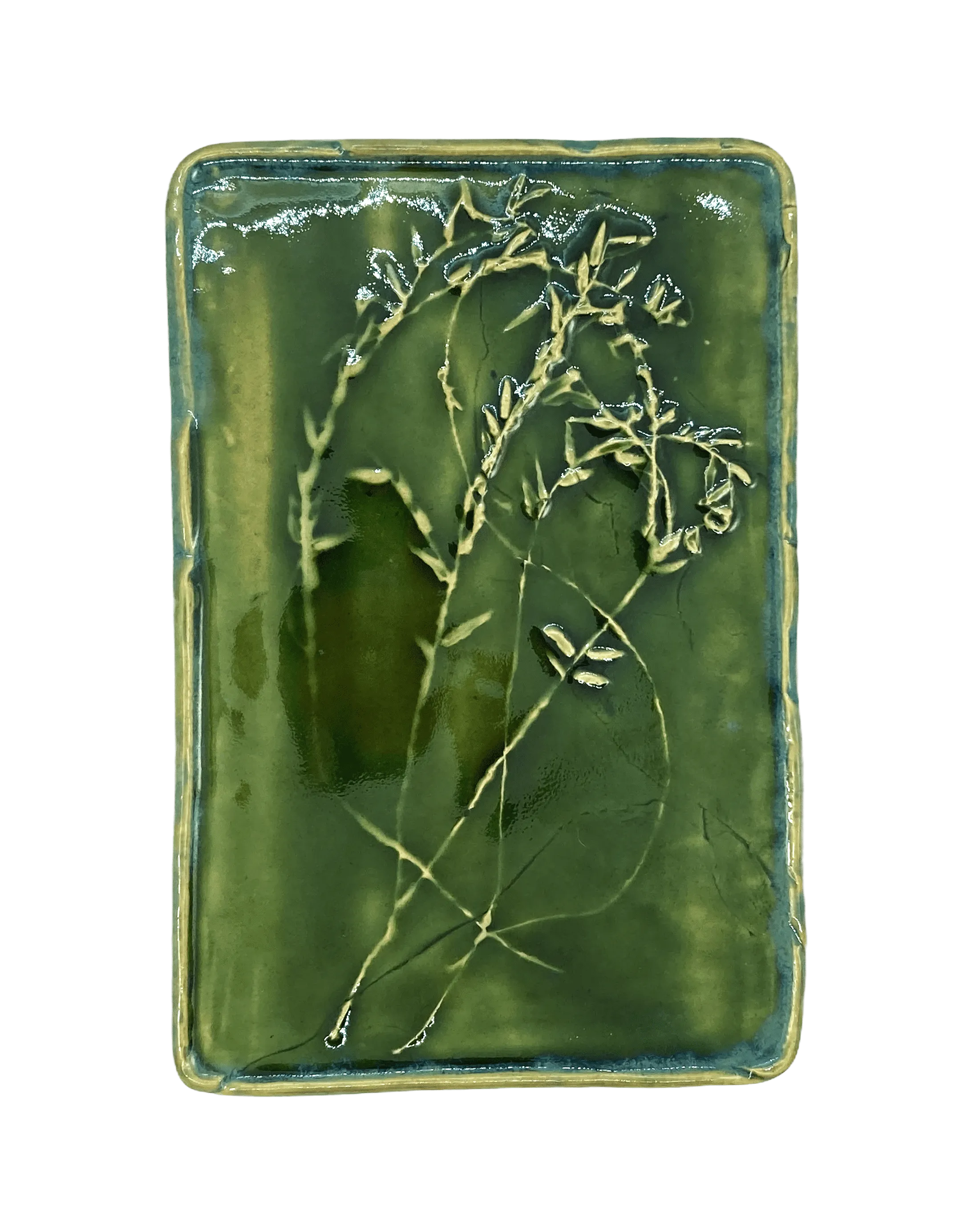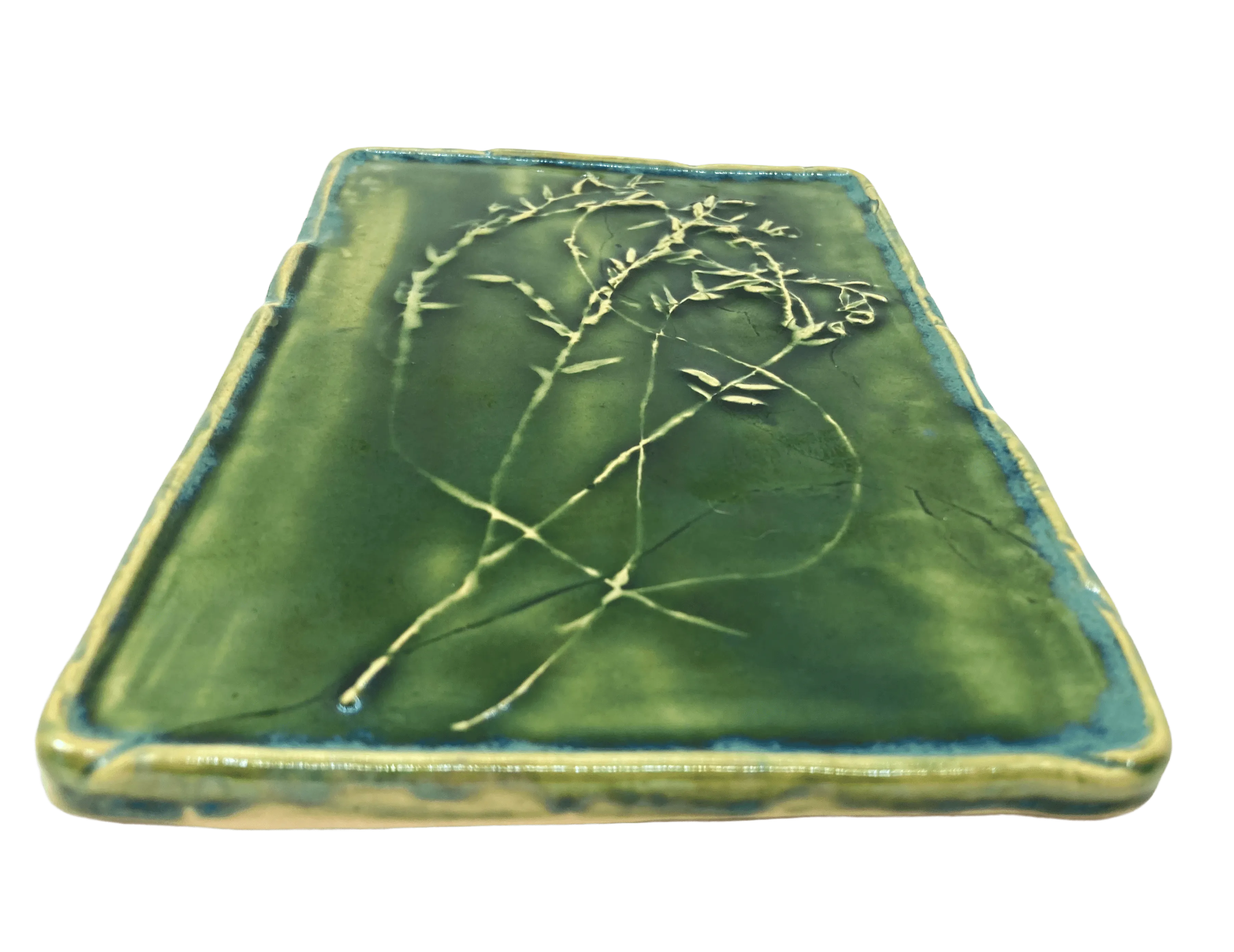 Prezentowana płytka ceramiczna to wyjątkowy przykład rękodzieła. Jej nieregularne kształty i transparentne szkliwo dodają jej unikalnego charakteru. Motyw roślinny, inspirowany żurawiną błotną, dodaje jej naturalnego uroku. Idealna jako podstawka, doda uroku każdemu wnętrzu.